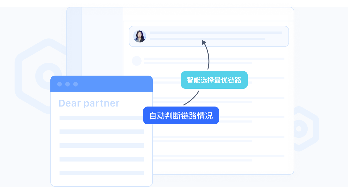 当国内用户向国外投递邮件时,自动判断网络链路情况,智能选择最优的投递链路。
